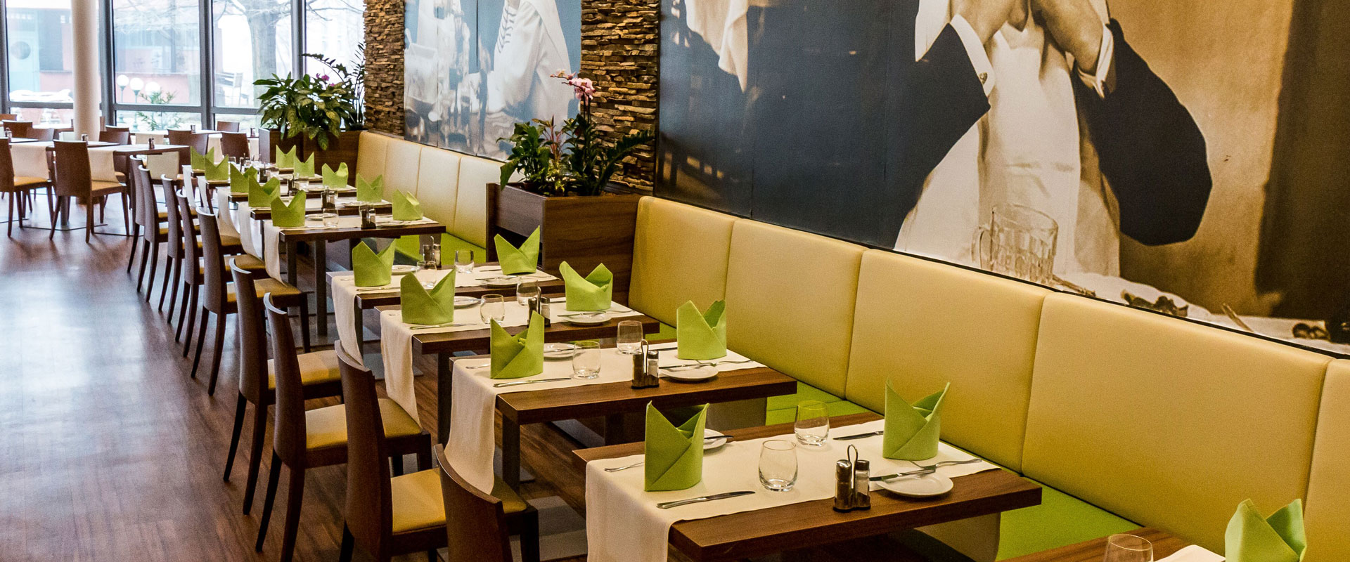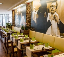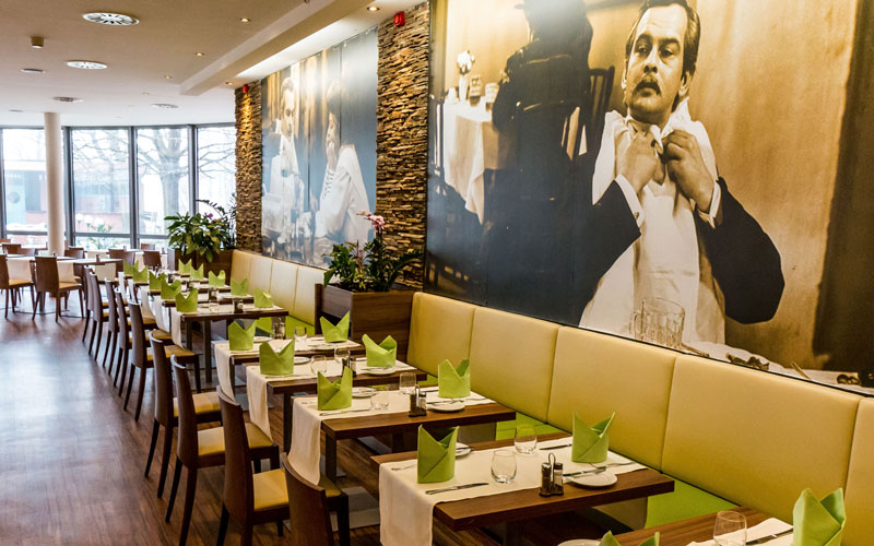 Szállodánk Sindbad étterme a Holiday Inn standardjainak megfelelően gazdag, hideg és meleg ételeket és italokat is magában foglaló büféreggelivel várja vendégeinket. Déli és esti éttermi kínálatunk a modern magyar valamint a nemzetközi, elsősorban a mediterrán konyha választékát, íz világát kínálja. Mindehhez gyönyörűen felújított éttermünk nyújtja a „színfalakat”: Huszárik Zoltán Szindbád c. filmjéből vett hatalmas poszterek díszítik falainkat, Latinovits Zoltán és Dajka Margit felejthetetlen alakjával.